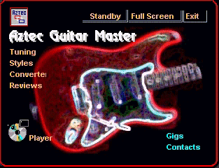 ![]() Aztec Guitar Master comes in several modules CD Manager There are many CD players out there, but this one is geared up especially for guitarists. The core of this module is a searchable database with instant access to any track or section of track stored on any CD. Find all tracks by a particular artist, style, description, phrase, rating etc. Ideal for quick, easy access to Guitar Techniques, Total Guitar and Guitarist magazine CD tracks etc. great for jamming and getting in the groove to MP3 format, allowing you to store and play hundreds of files directly from your hard disk Click below to obtain a beta demo copy